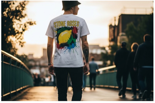 - Madchester’s Uniform: In the late ’80s and early ’90s, Manchester was a melting pot of indie, rave, and acid house. The Hacienda nightclub was its beating heart. The Stone Roses were the soundtrack, and their t-shirts became the unofficial uniform of a generation blending baggy clothes with dance culture.